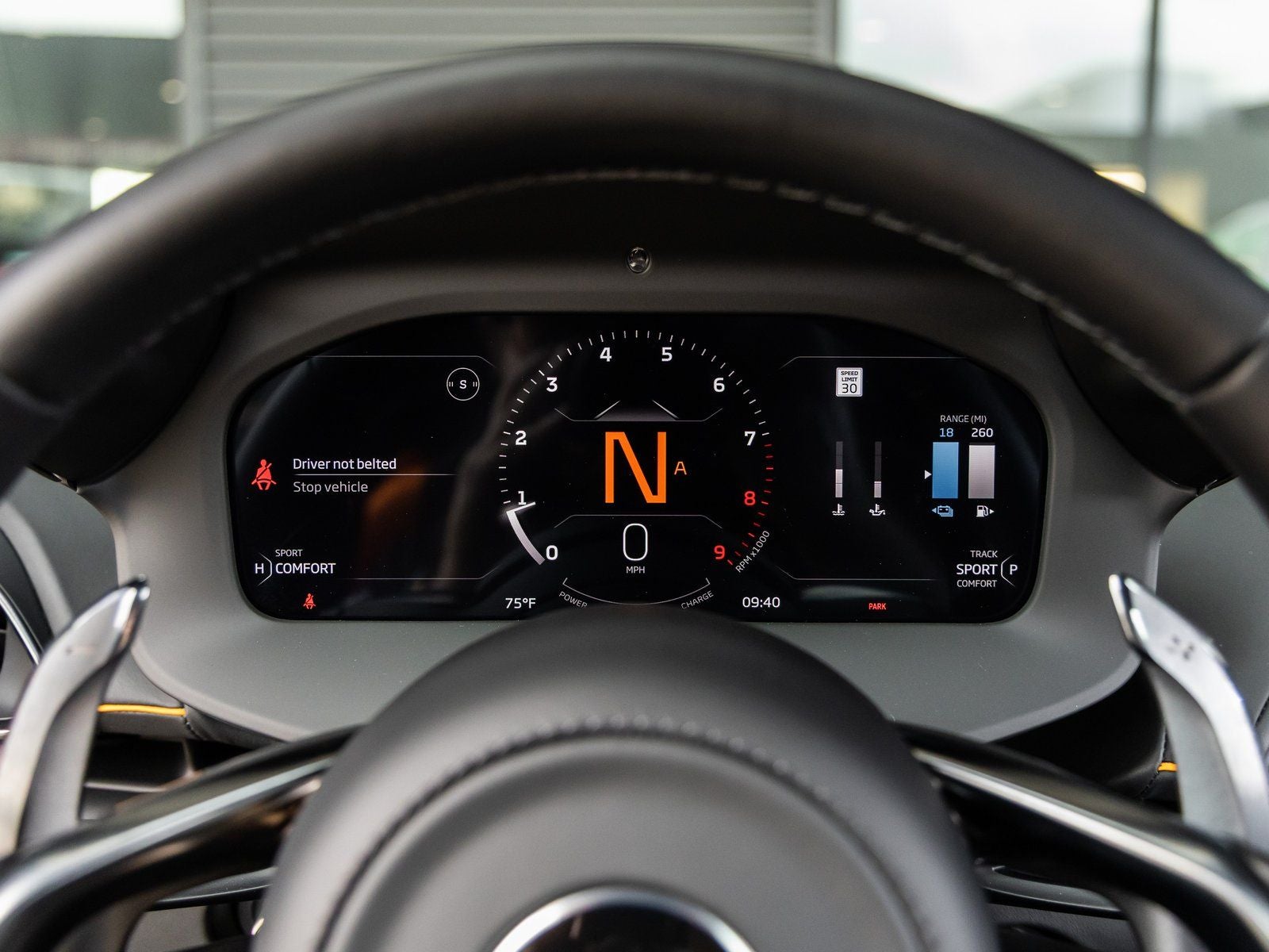 Step inside and the Vision Interior Theme in Black/Black with Visual Orange Accents welcomes you to a cockpit crafted for both luxury and performance. Power Adjustable Heated Comfort Seats provide exceptional support, while McLaren Orange 3-Point Seat Belts add a vibrant performance-inspired touch. The intuitive portrait infotainment system with navigation and connectivity, along with the Technology Pack and premium Bowers & Wilkins Audio System, ensures a refined and connected driving experience.