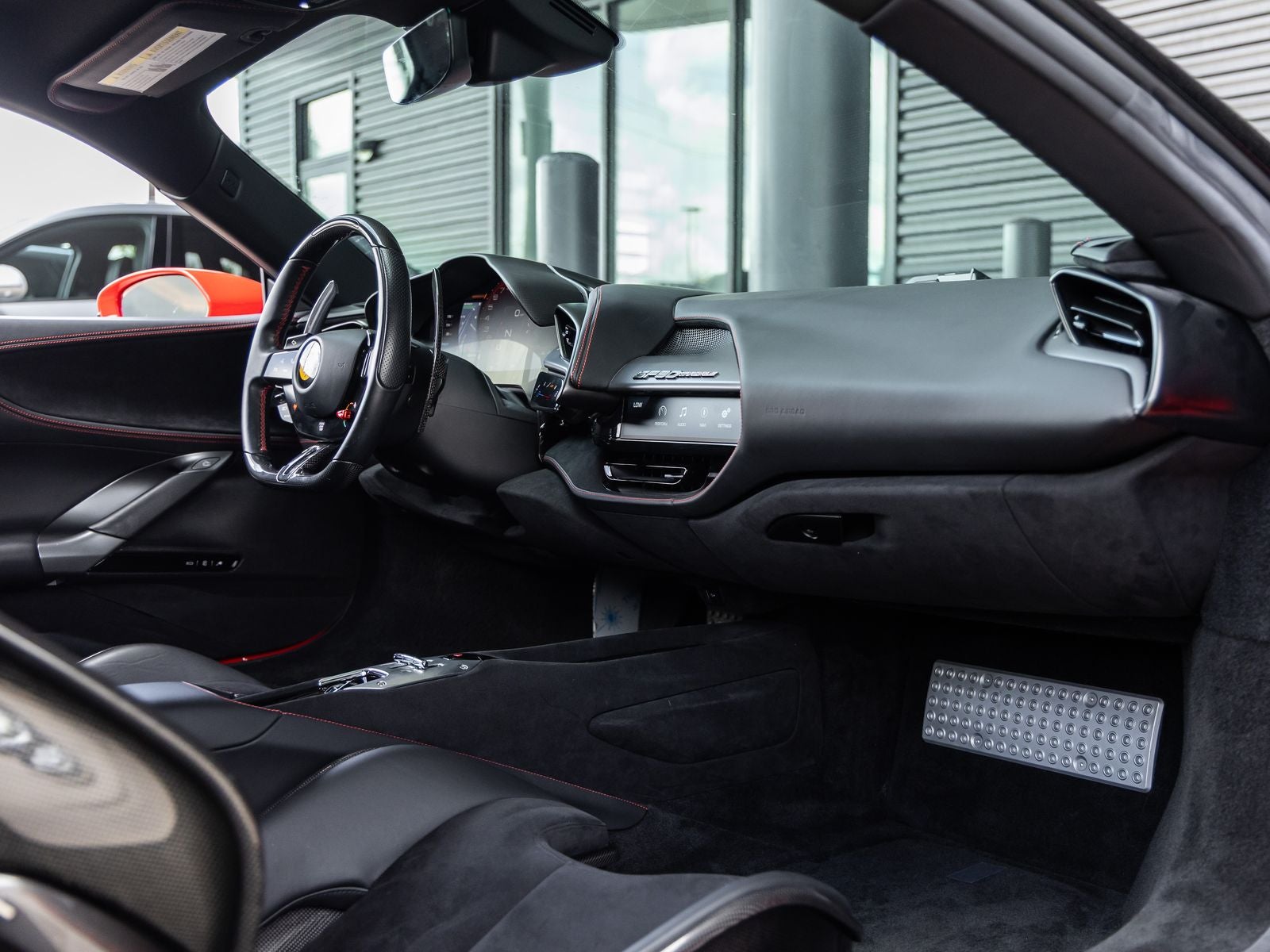Step inside and the Nero interior greets you, exuding an atmosphere of performance-focused luxury. Carbon Fibre Racing Seats (Size XL) provide exceptional support, while Alcantara seat inserts and Rosso contrast stitching elevate the cabins bespoke character. The Cavallino stitched on the headrests, Colored Inner Details, and Carbon Fibre trim elements reflect Ferraris dedication to craftsmanship and motorsport heritage. Apple CarPlay and advanced driver-focused technologies ensure modern connectivity within this high-performance cockpit.