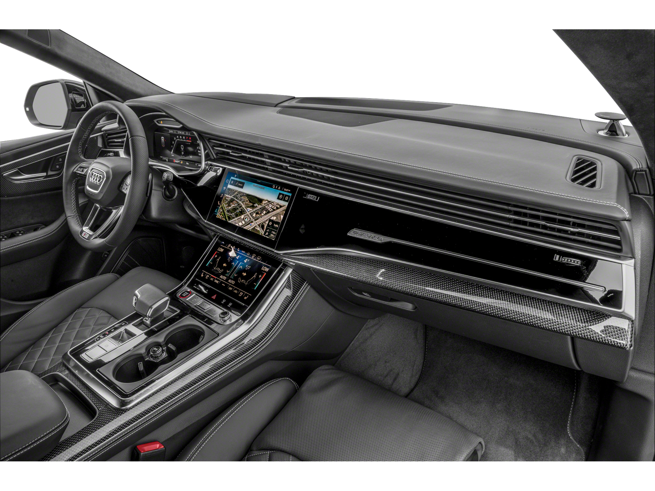 - Radio: Bang & Olufsen 3D Premium Sound System -inc: Audi connect CARE (limited time subscription), Audi Connect PLUS (6 month trial subscription, acceptance of terms required), Audi phone box w/wireless charging and signal booster, MMI navigation plus w/MMI touch response - 10.1" upper screen, Audi smartphone interface (wireless Apple CarPlay and Android Auto) and SiriusXM w/360L (w/3-month trial subscription, acceptance of terms required)