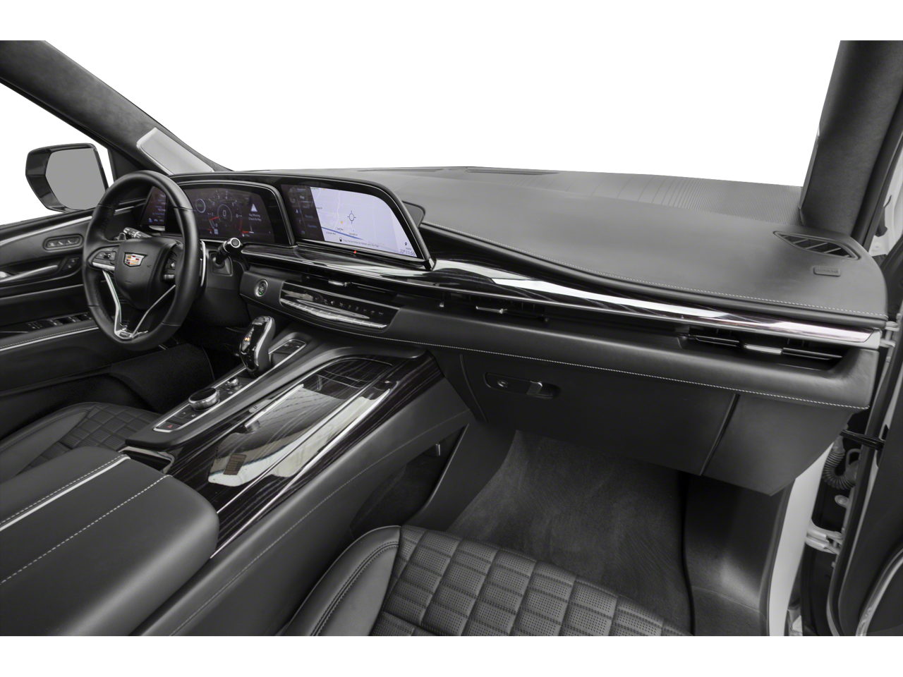 Step inside and the Jet Black interior greets you, exuding an air of luxury that only Cadillac can deliver. Semi-aniline leather seating across all three rows, a leather-wrapped interior, and a meticulously crafted cabin elevate every journey. A 16.9-inch OLED infotainment display, 14.2-inch reconfigurable cluster, and AKG Studio Reference 36-speaker audio system immerse you in cutting-edge technology and sound. Heated and ventilated front seats, a panoramic sunroof, and rear-seat entertainment further enhance passenger comfort.