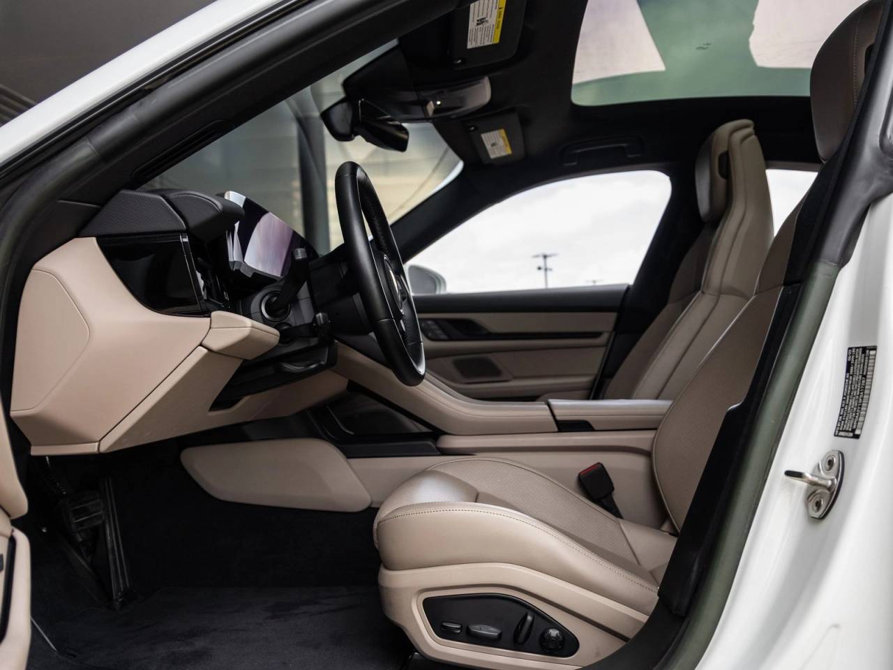 The Taycan stands as a bold expression of Porsches forward-thinking engineering, its White exterior radiating modern sophistication. Adorned with striking 21 RS Spyder Design Wheels and LED Headlights with Porsche Dynamic Light System Plus (PDLS+), it commands attention with both presence and precision. The Panoramic Roof with Variable Light Control enhances the cabins airy ambiance, while Power Folding Exterior Mirrors and Under Door Puddle Light Projectors add thoughtful refinement to its dynamic design.