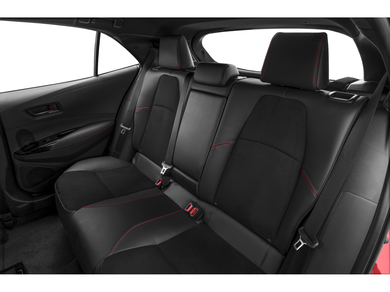 Step inside and the Black interior greets you, exuding a focused, driver-centric environment crafted for enthusiasts. The Brin Naub and synthetic leather-trimmed sport seats with red stitching provide exceptional support during spirited driving. The Leather-Wrapped Steering Wheel with GR badging and aluminum sport pedals punctuate the cabin with a motorsport flair, while the 12.3-inch Digital Gauge Cluster and 8-inch Toyota Audio Multimedia system reflect modern performance technology.