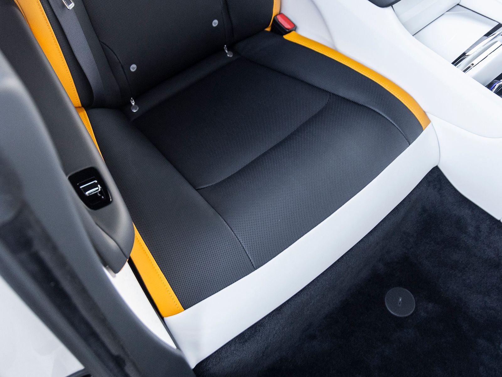 The Spectre stands as a revolutionary grand tourer, its Arctic White exterior exuding timeless elegance while concealing a bold step into the future of electrification. Adorned with striking 23-inch wheels and signature Rolls-Royce design elements, including the iconic Spirit of Ecstasy and illuminated grille, it presents an unmistakable presence. Its fastback silhouette and meticulously sculpted bodywork reflect both aerodynamic precision and commanding road presence.