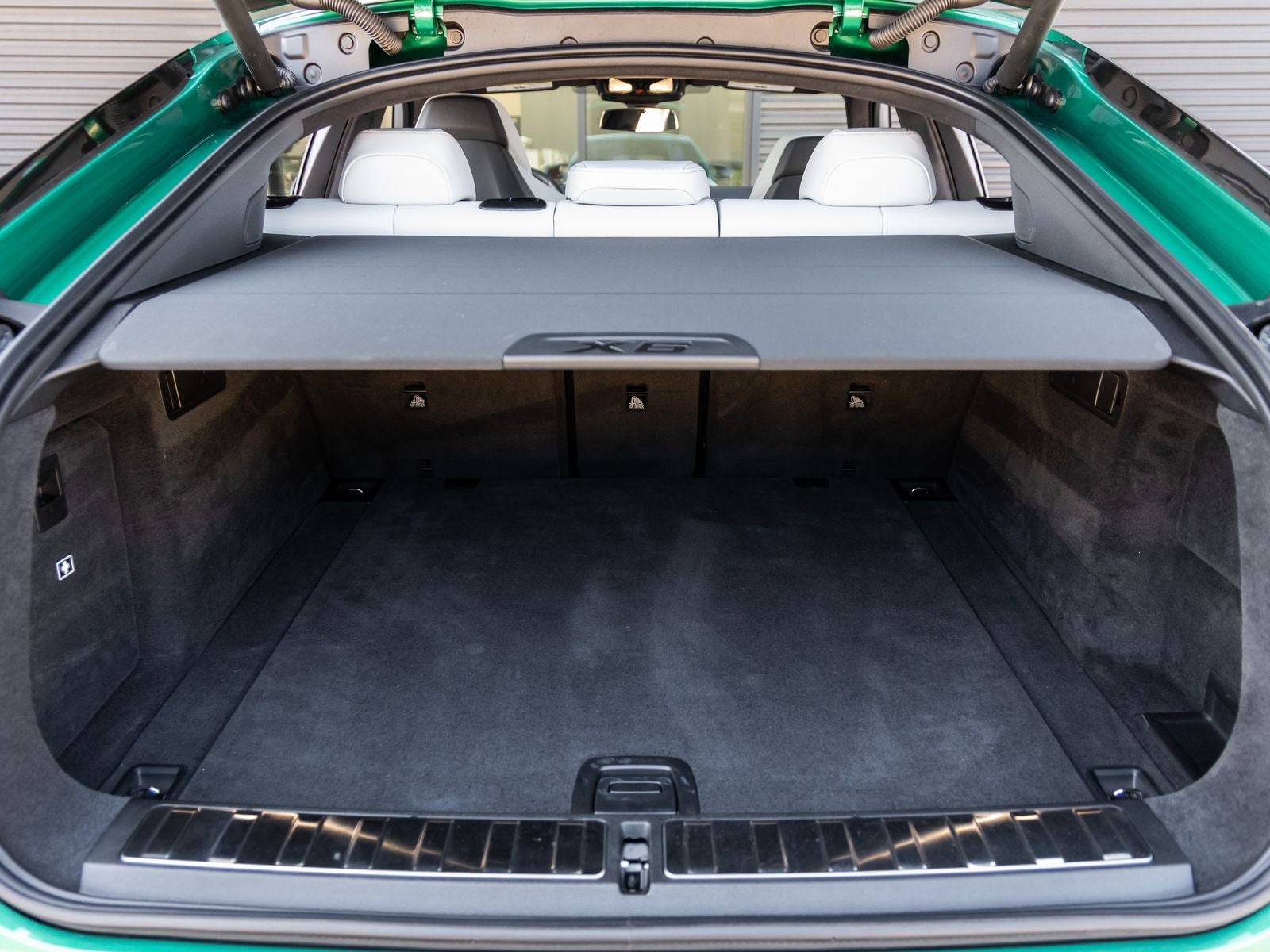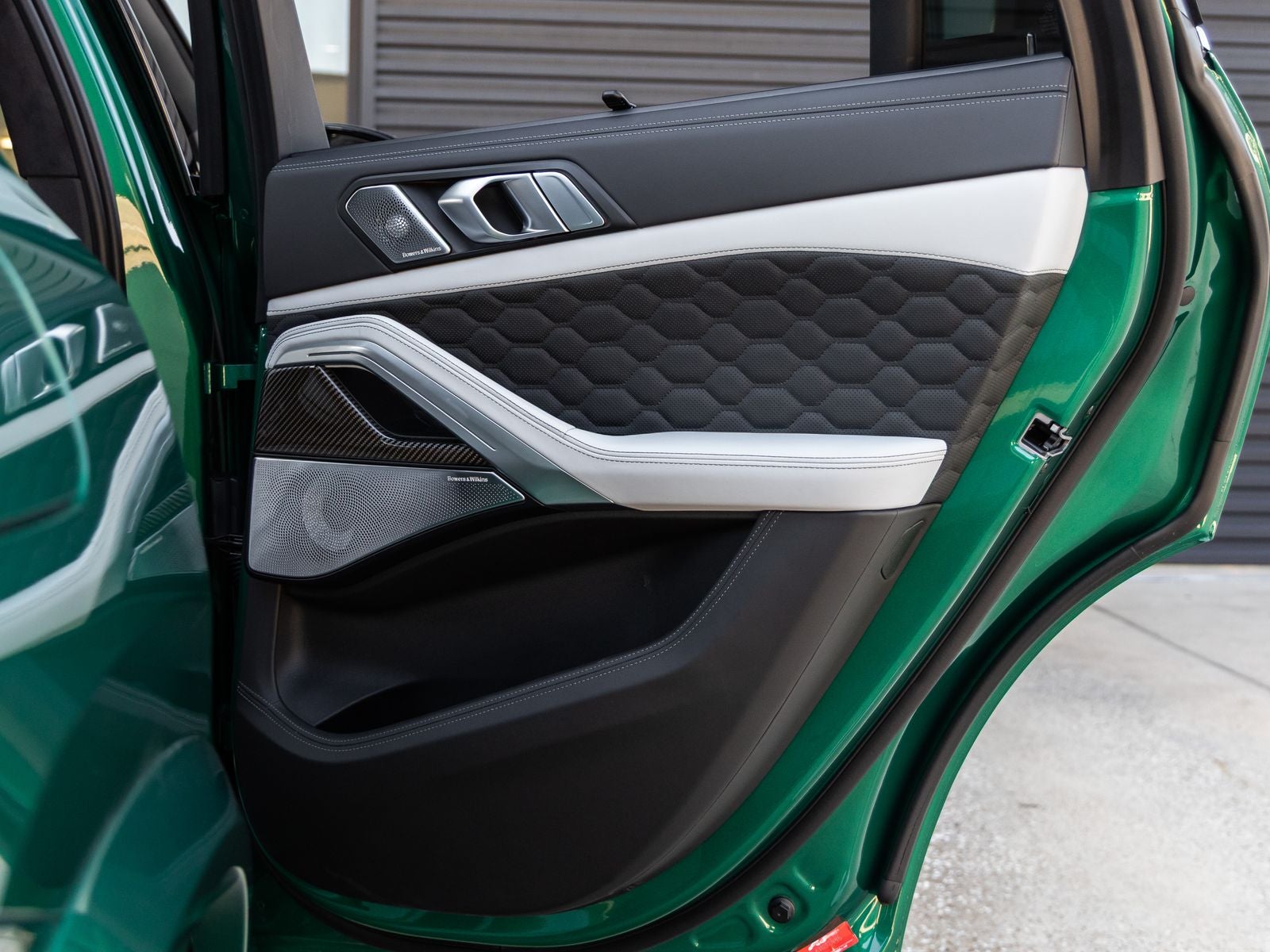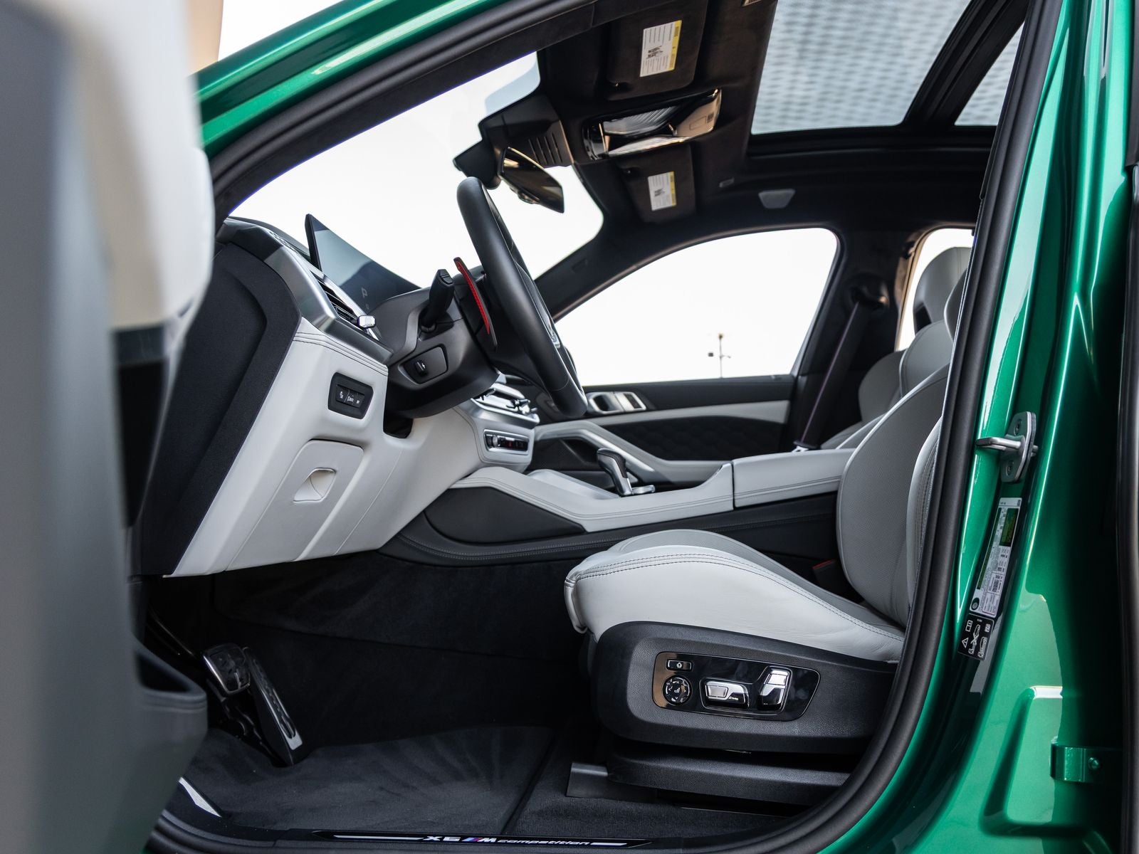 The X6 M Competition stands as a bold statement of power and design, its Isle of Man Green Metallic exterior not just a color, but an unmistakable mark of exclusivity. Adorned with 21/22 M Star-Spoke Bi-Color Wheels, M Shadowline Lights, and a striking M Carbon Rear Spoiler, it presents an aggressive and commanding stance. Signature quad exhaust outlets and sculpted body lines further emphasize its performance pedigree.