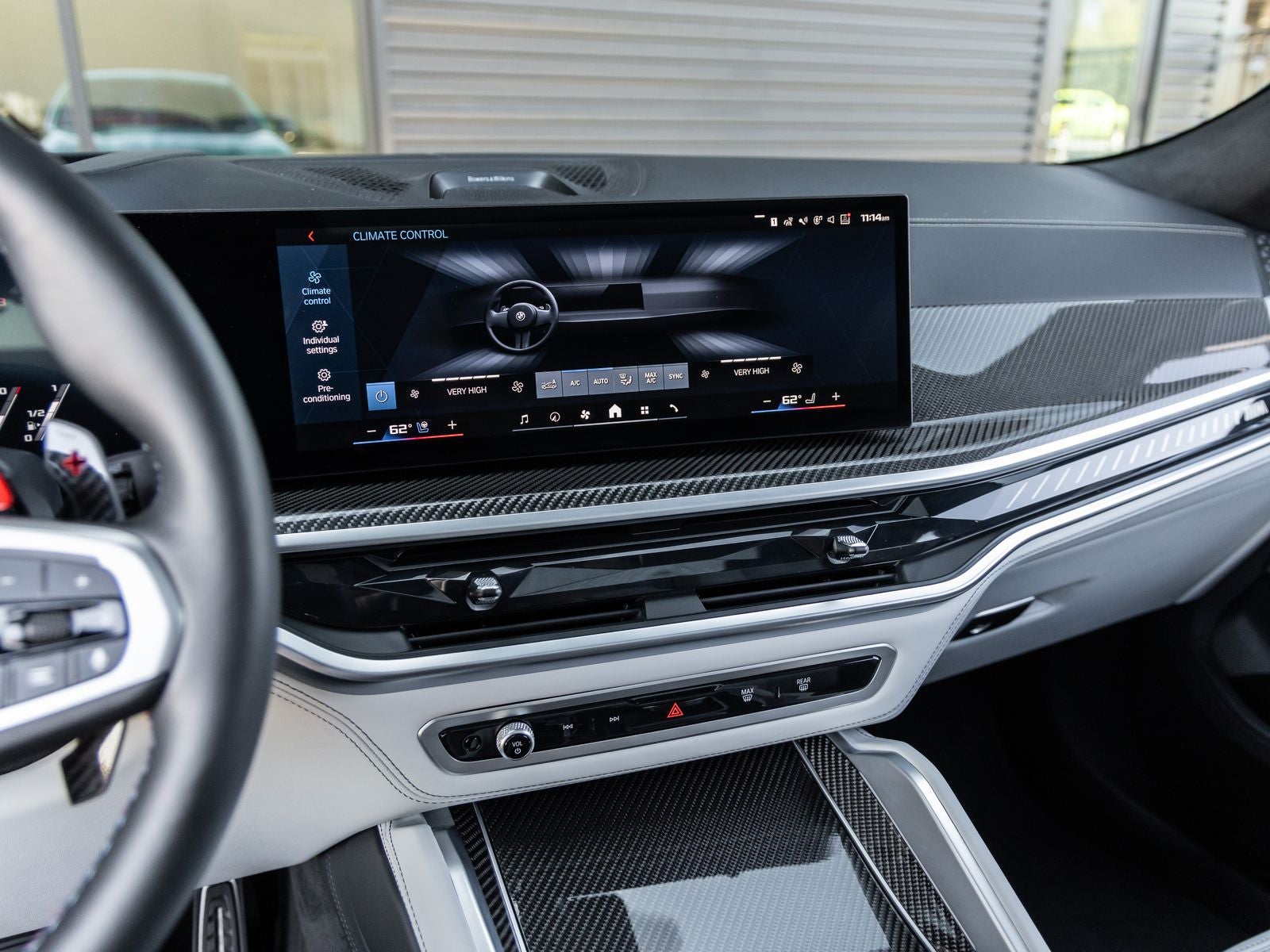 Step inside and the Silverstone Full Merino Leather Interior welcomes you with a blend of sport-focused luxury and advanced technology. The multi-function M sport seats with memory, heating, ventilation, and massage functionality ensure ultimate comfort. The cabin is enhanced by Carbon Fiber trim, a Panoramic Sky Lounge LED Roof, and the Bowers & Wilkins Diamond Surround Sound System, delivering an immersive and premium driving environment.