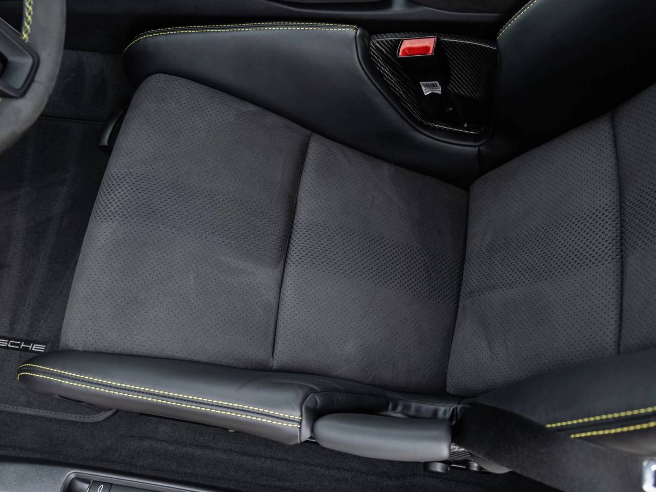 Step inside and the Leather/Race-Tex Interior in Black with Arctic Grey Stitching welcomes you into a cockpit designed for precision and luxury. Deviated stitching in Racing Yellow throughout the cabin, along with Carbon Fiber Illuminated Door-Sill Guards and Door Pull Loops in Racing Yellow, emphasize its bespoke craftsmanship. The BOSE Surround Sound System, Light Design Package, and Smartphone Compartment ensure modern connectivity and comfort, while the Chrono Package enhances the driving experience with track-focused functionality.