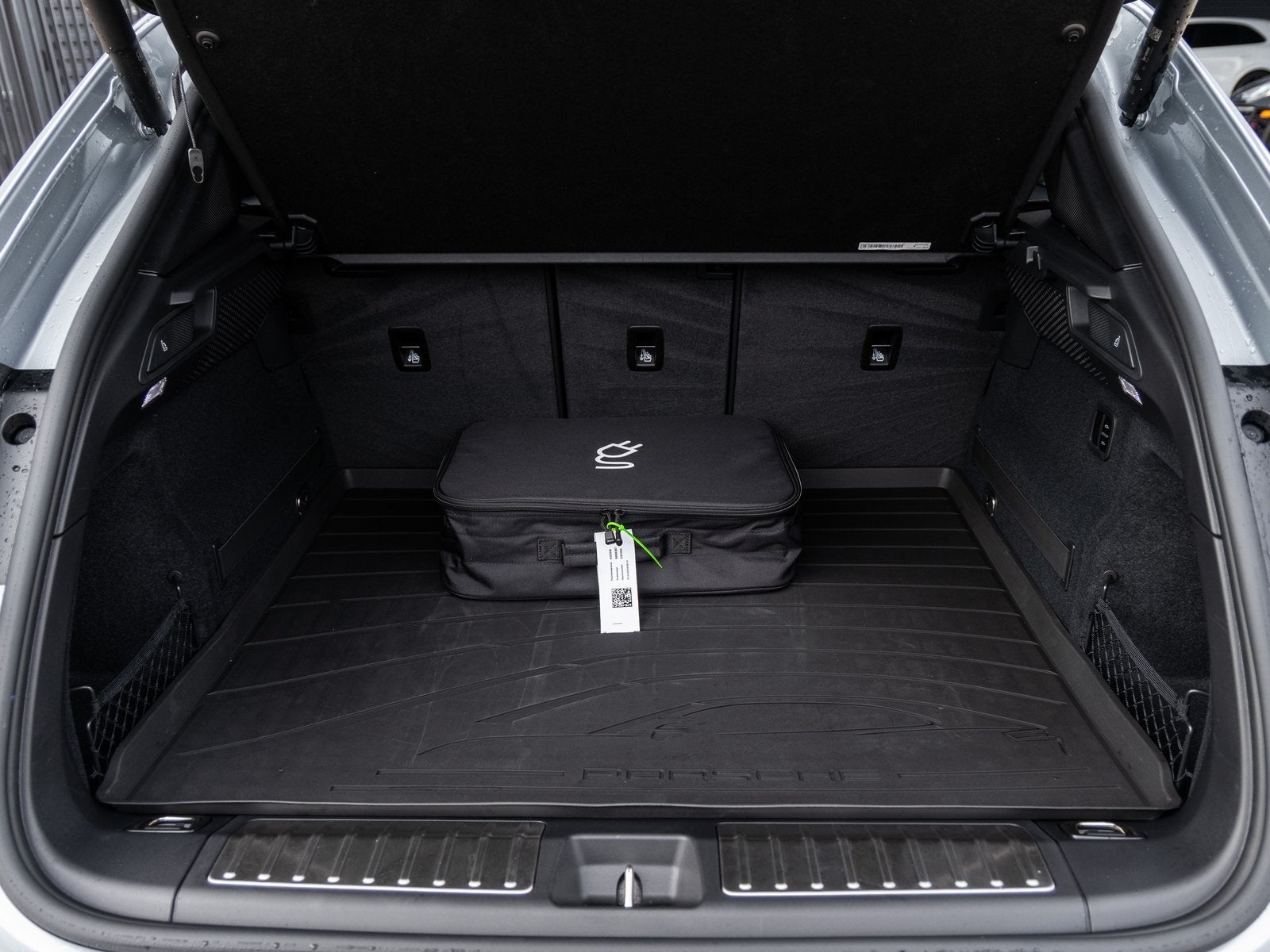 The Macan Electric is Porsches bold step into the electric future. Its Dolomite Silver Metallic exterior is matched with striking 21 Macan Design Wheels and LED-Matrix Design Headlights in Black, giving the SUV a powerful, modern presence. The Power Charge Port Cover and Roof Rails in Black Aluminum add function with style, while the Sport Chrono Package enhances its performance personality.